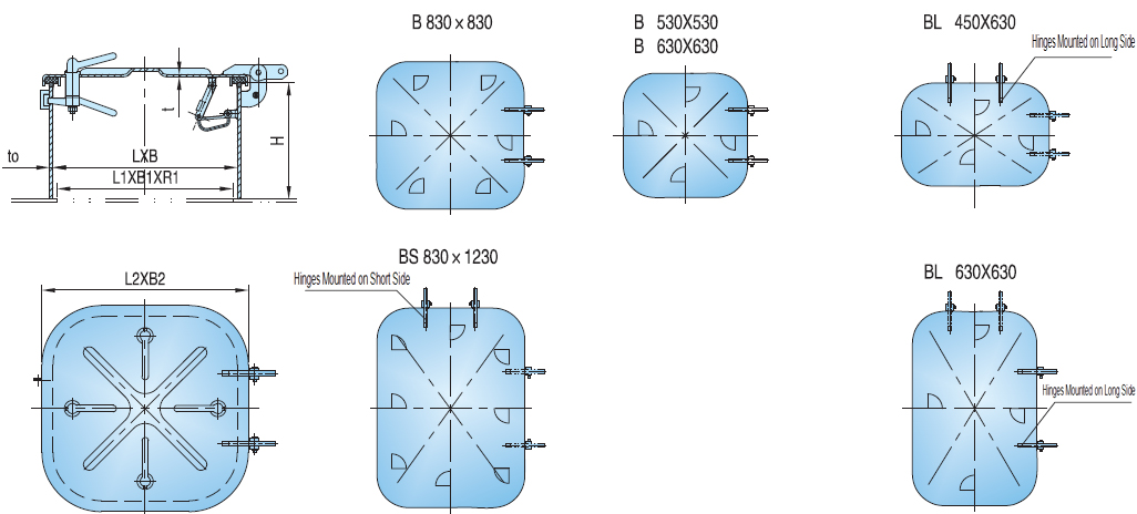 It is a kind of weathertight hatch cover which equips with dog clips. This small hatch cover is applicable for applications where frequent access is required. It is ideal for various ships and boats. It meets the standard of CB/T 3728-2011. We provide a full selection of cover specifications. Customization is available. Excepting steel small size hatch cover B, we also provide steel small size hatch cover A, C, D. More details, please contact us. We will serve you wholeheartedly.