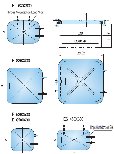Steel Small Size Hatch Cover Type E is a sort of small hatch cover which is not weathertight. It is suitable for applications on ships where weather tightness is not required. It is made of steel and equips butterfly clips. Hinges can be mounted on the short side or long side of steel small size hatch cover according to your requirements. There are two shapes of the hatch cover: square and rectangle. If you have any special requirement, please contact us. We will provide professional service and approved products.