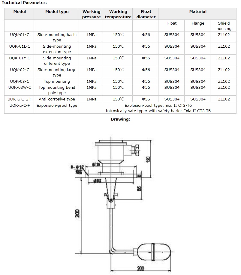UQK type float level controller is widly used in ship, chemical industry and other industrial equipment to control and alarm the level in tank by two position type.