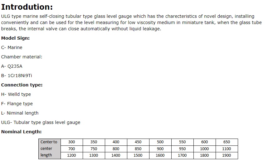 ULG Tubular Glass Level Gauge