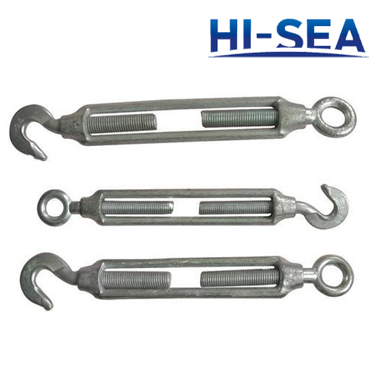 Turnbuckles with various size are popularly used in constraction, shipping and mining. They combine strength and durability, yet are simple to set up and adjust. It is a device for adjust the tension or length of ropes, cables, tie rods, and other tensioning system. It normally consists of two threaded eye bolts, one screwed into each end of a small metal frame, one with a left-hand thread and the other with a right-hand thread. The tension can be adjusted by rotating the frame.