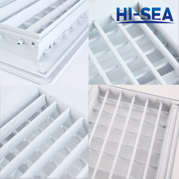 This product is made of aluminum alloy, and the blade Angle can be adjusted in any range after high temperature baking. The blade can get different air supply distance and different diffusion Angle at different angles. It can be used directly with fan coil units.