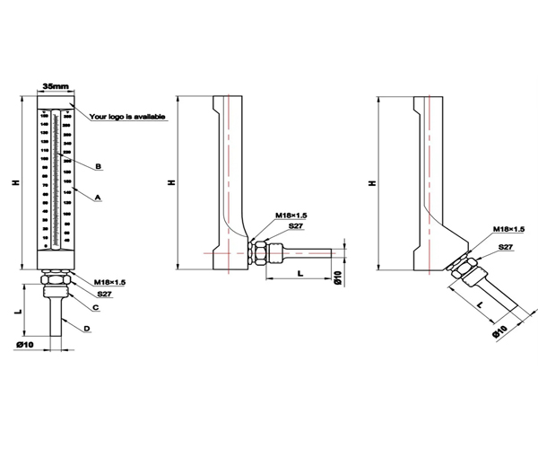 Metallic protector thermometer consists of glass thermometer and metallic protector. It is used to measure medium temperature of liquid, gas of thank and pipeline in ship and other industrial equipment.