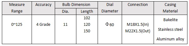Pressure type thermometer can be used to remotely measure temperature of water or oil in engine cooling water system and L.O.system.