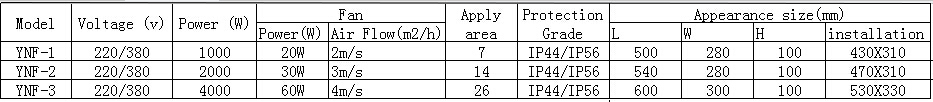 YNF Marine Fan Heater is original RNP series electric heaters and RNP - F heater combination of the strengths of both, it possesses heat faster, super mute wind gently (the cross flow fan), constant temperature is adjustable, high protection grade and higher thermal efficiency than hanging installation, saving space, suitable for ship cabin, field operation vehicle (picture of 220 v, 110, 380, 440 v electrical system can be customized).