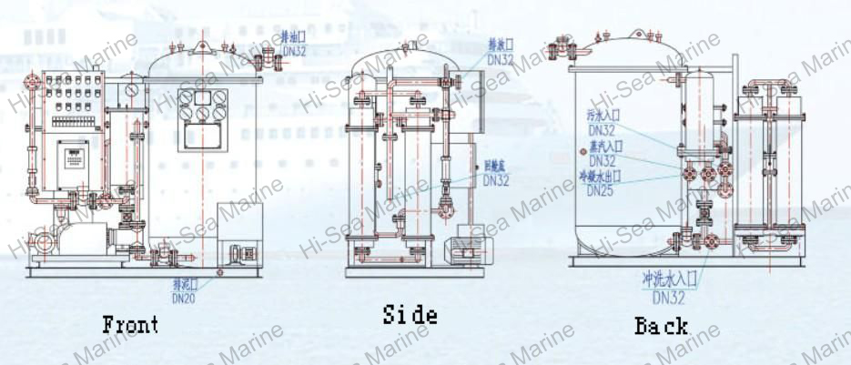 The Water and Oil Separator adopts the combination of 1ststage, cone plate gravity and coalesce separation; 2ndstage, fiber filter and 3rdstage, membrane permeation in order to make the treated bilge water to reach the requirements of discharge standard of the resolution of IMO MEPC.107 (49).